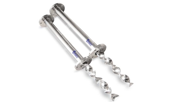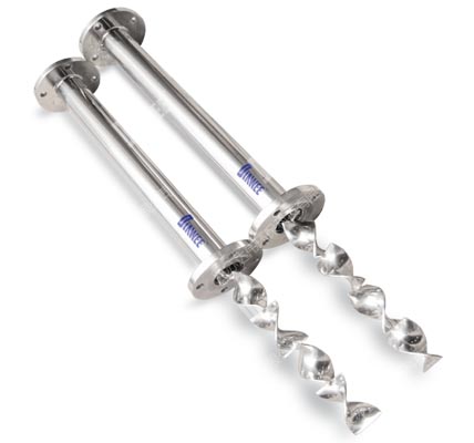 达伟管道混合器为三节组成(根据混合介质的性状可增加节数)。每节混合器有一个180°扭曲的固定螺旋叶片,分左旋和右旋两种。相邻两节中的螺旋叶片旋转方向相反,并相错90°。在使用过程中,混合器的螺旋叶片不动,仅是被混合的物料或介质的运动,流体通过它产生降压,无需外部能源,即可实现流动分割、径向混合、反向旋转,两种介质不断激烈掺混扩散,从而达到混合目的。
